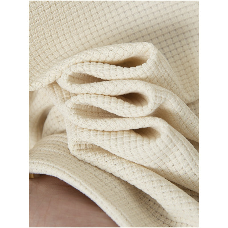 TEXTURED WAFFLE FABRIC – Add depth and breathable softness. The waffle-texture knit not only adds visual interest but also improves air circulation, keeping you cool and comfortable throughout the day. This unique fabric enhances wearability without compromising on structure, giving the set a refined, tactile finish that feels just as good as it looks.