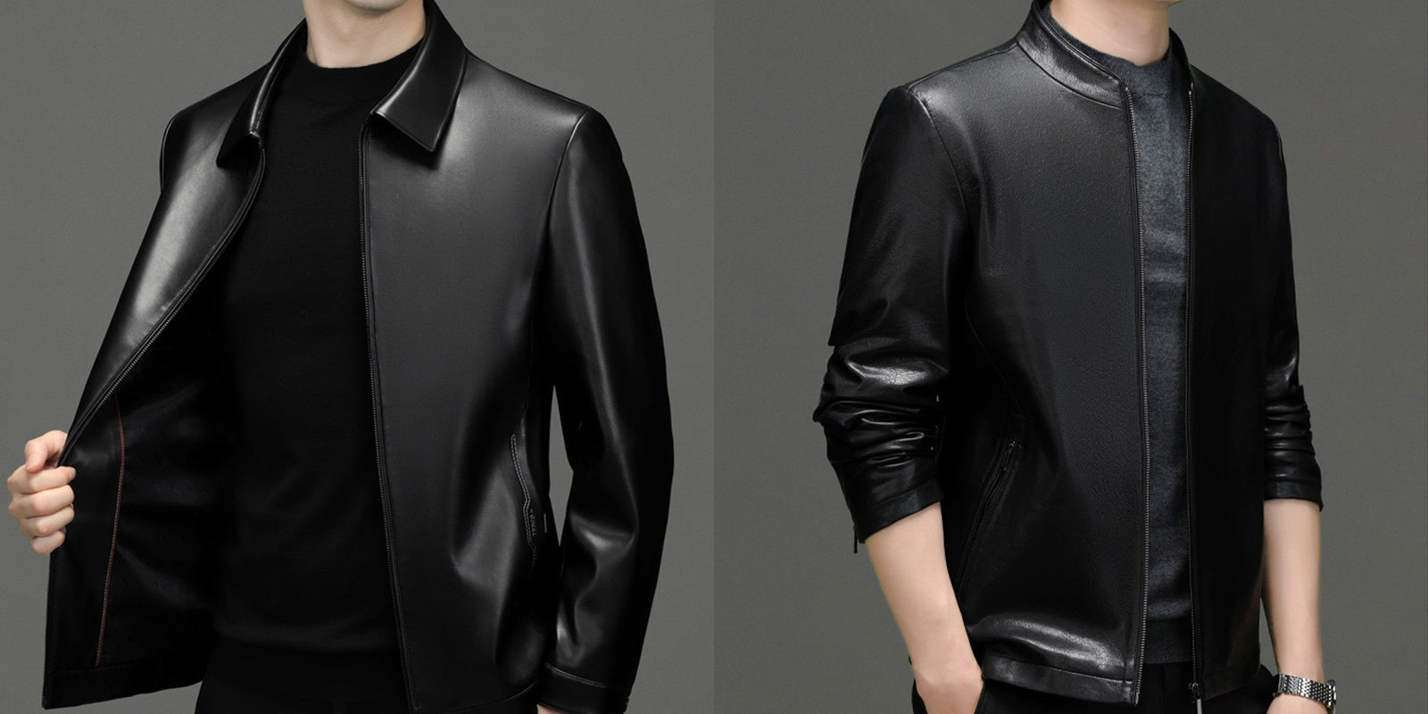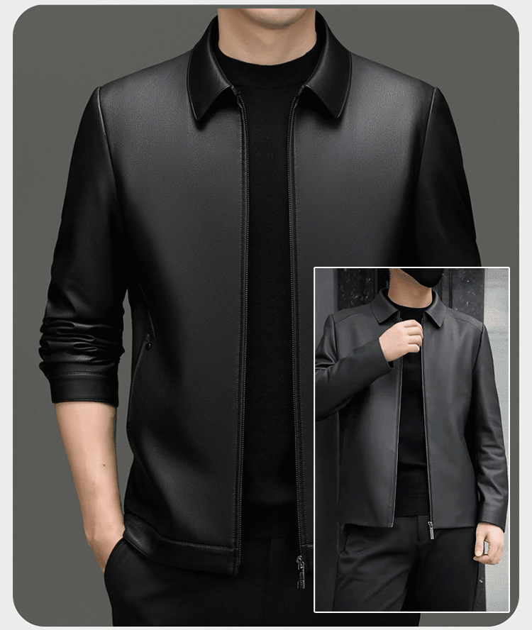 Men's Classic Leather Jacket with Zipper Front