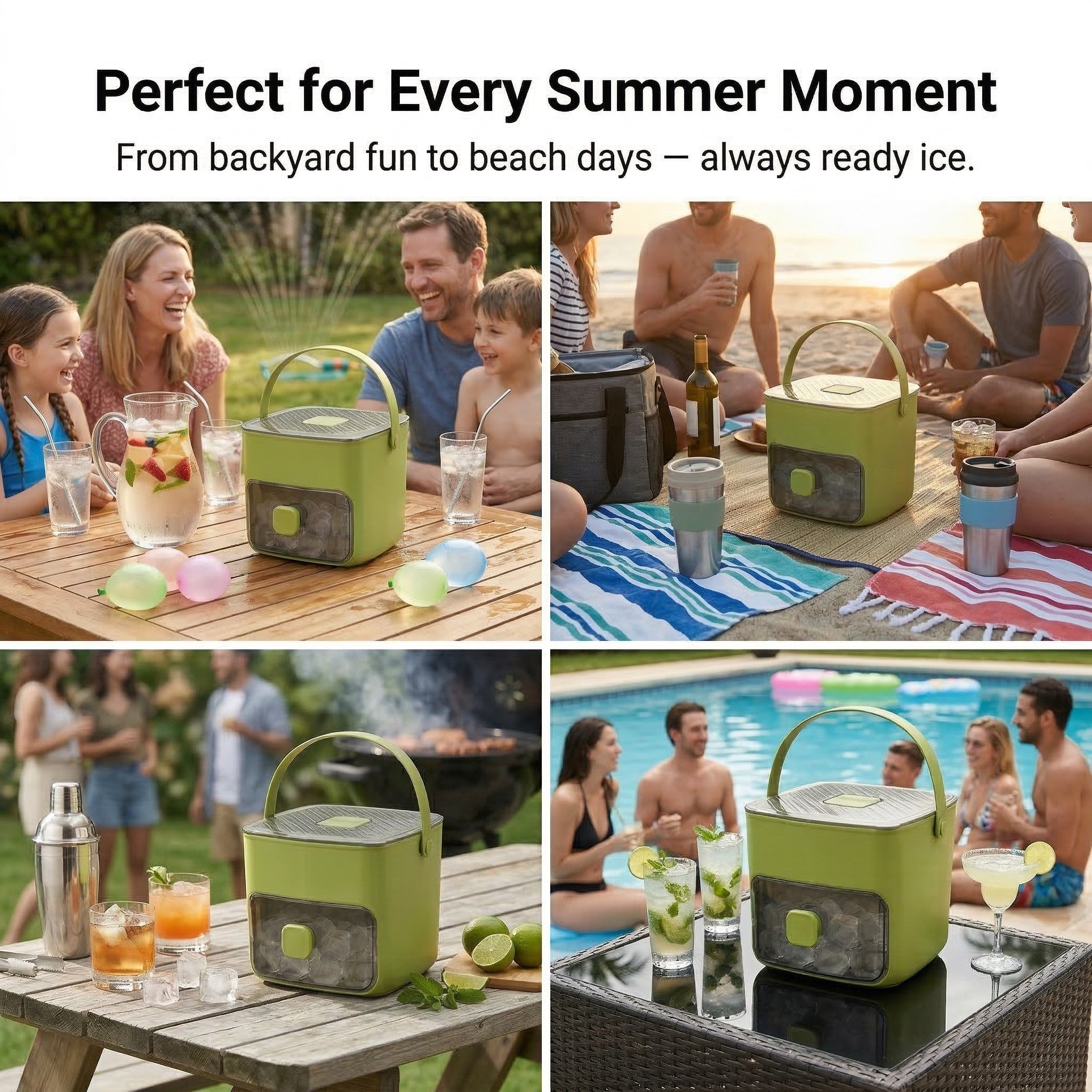 PORTABLE & EASY TO CLEAN - Equipped with a sturdy handle for easy transport from the kitchen to the patio. All parts are detachable, making cleanup a breeze and ensuring hygienic ice-making every single time.