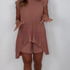 STYLISH 2-PIECE SET - This matching set includes a pleated tunic top and high-waisted shorts, offering a chic, coordinated look perfect for casual outings, brunches, or weekend wear.