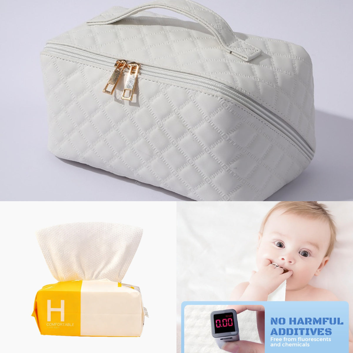 Triple-Proof Interior:Built with SGS-certified waterproof cosmetic bag lining, the interior resists leaks, stains, and unwanted odors. Safely store liquid serums, loose powders, and makeup brushes without worrying about spills or dampness – ideal as a travel toiletry bag for women.