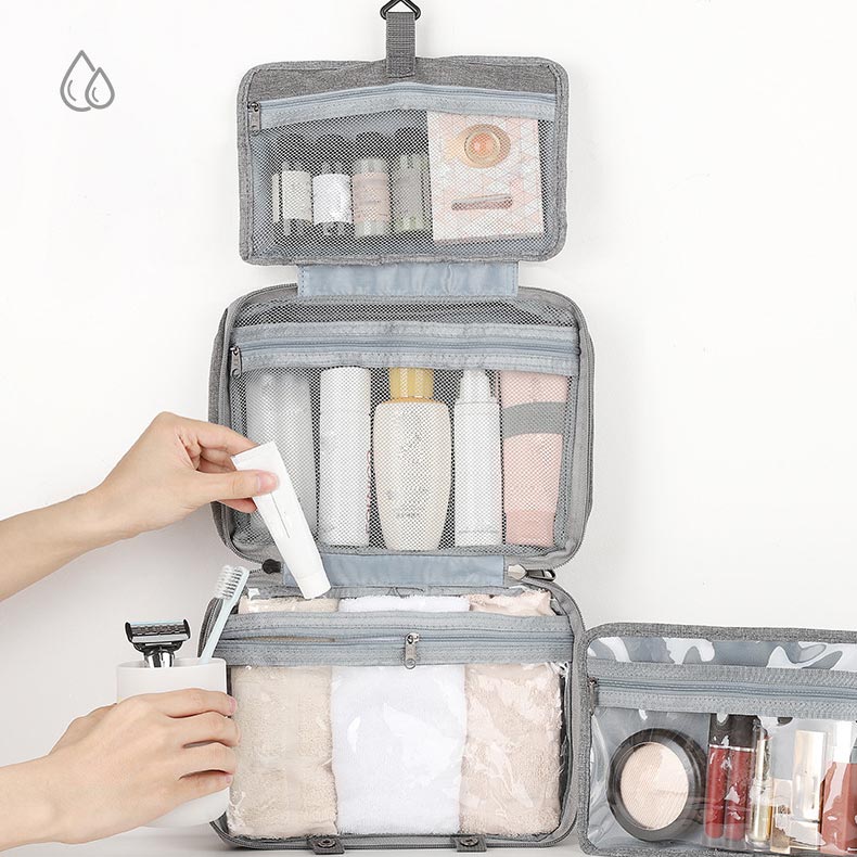 [DRY AND WET SEPARATION] This cosmetic bag is cleverly designed with a dry and wet separation compartment. Keep your dry cosmetics and toiletries in one section and store wet items like toothpaste or lotions in the other, preventing any unwanted leakage.