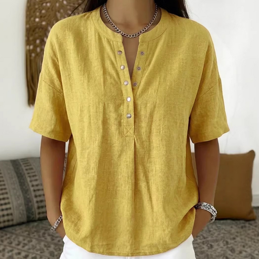 💖 Women's Solid-Color Button-Down Collar Casual Loose Cotton-Linen Top